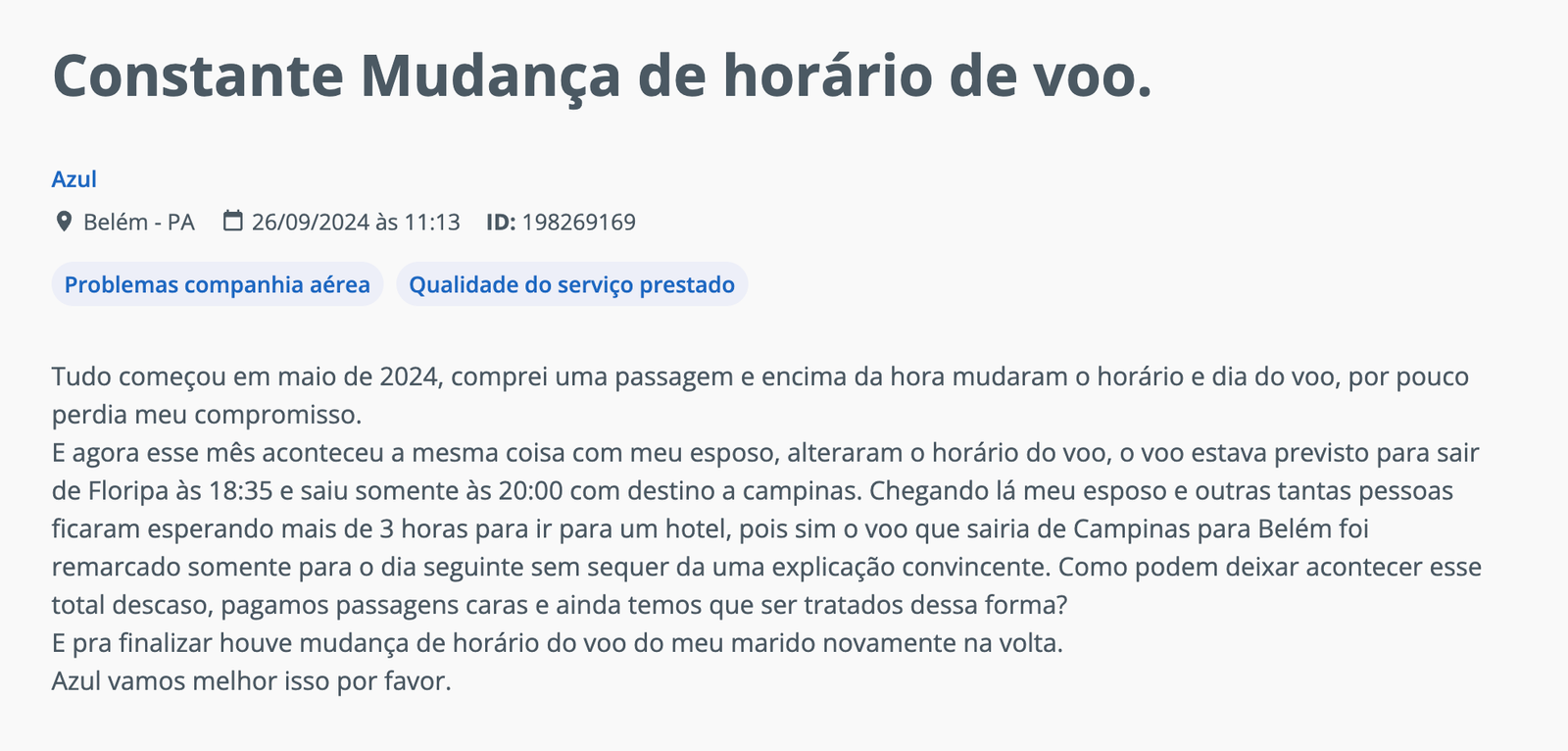 sobre problemas com voos